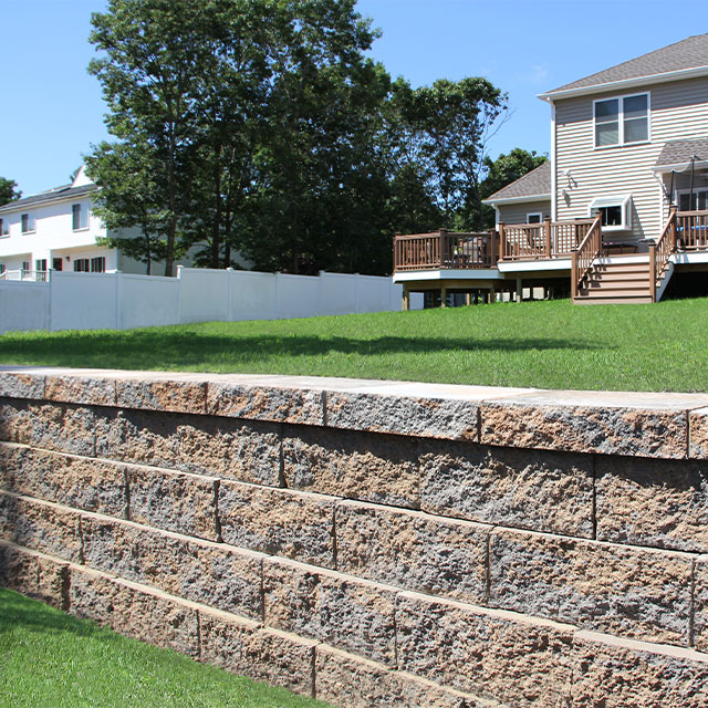 Colonial Wall enhances outdoor living areas with a traditional look that has modern charm. The solid wall blocks have a double-sided, hard-split texture.
